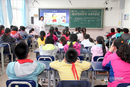“你知道水痘有幼年、中年和老年期嗎?你知道打噴嚏的時候怎樣做才是正確的嗎?怎樣洗手能趕走最多的細菌?”帶著這些學生感興趣的疑問,尚紅梅主任結(jié)合當前易發(fā)的手足口病、麻疹、流行性腮腺炎及猩紅熱等,逐一為學生們講解了癥狀、危害及預防、護理措施等知識。她特別指出,這些傳染病大多都是呼吸道傳染病,可通過空氣、短距離飛沫或接觸呼吸道分泌物等途徑傳播,學校這種人員比較密集、相對比較集中的地方,一旦出現(xiàn)更是比較容易傳播。