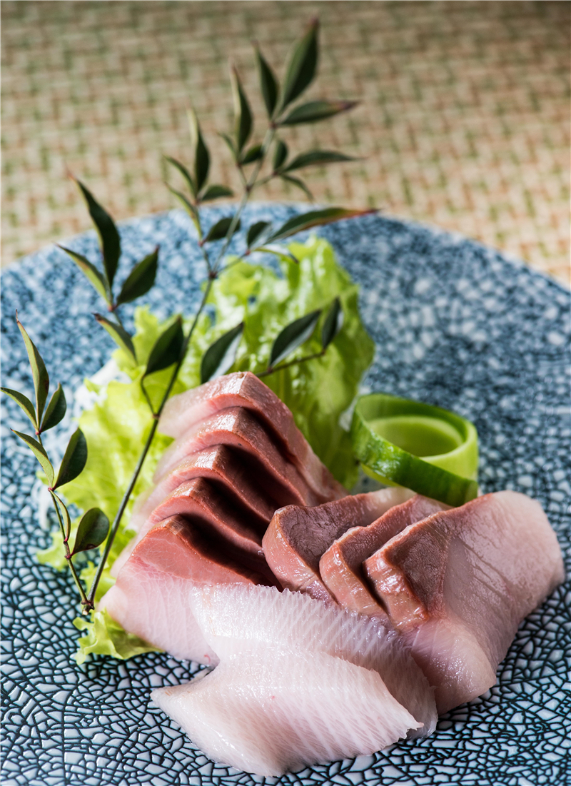 微微泛著粉色的鰤魚刺身,肉質(zhì)甜美,脂膏豐腴,入口融化在舌尖之上,是日料里的頂級(jí)食材,日本人鐘情于鰤魚,不僅因?yàn)樗窍矐c之日招待賓客,過大禮時(shí)的魚,更因?yàn)樗目诟袠O致,鰤魚刺身,口感細(xì)膩,油花散布極為均勻,沾上的醬油,都會(huì)一滴滴滑落而下。