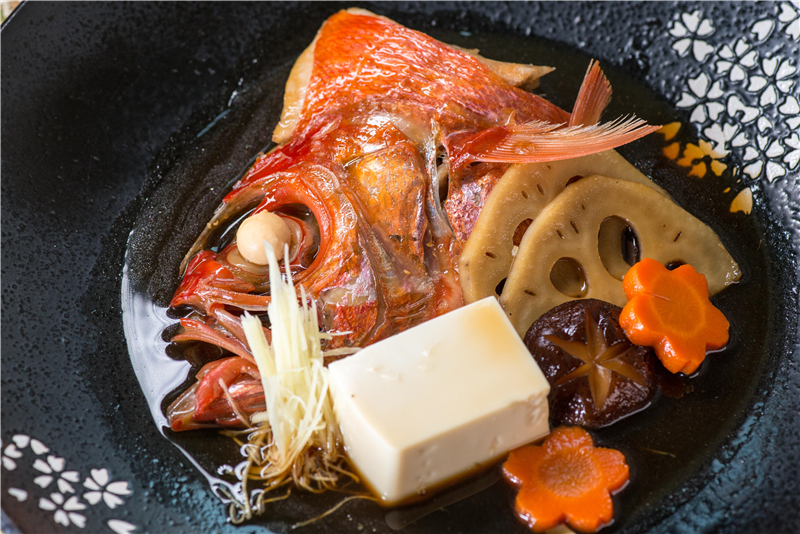 金目鯛,鯛的其中之一。金目鯛為迷人的紅色,是種獨(dú)特讓人過目難忘的顏色,因此被視為喜慶的象征,也是日本人新年的年菜,有吉祥之意味。棲息于深海巖礁海域的金目鯛,捕獲難度巨大,致使供應(yīng)數(shù)量極少,尤為珍惜。漁網(wǎng)捕獲的金目鯛會(huì)因?yàn)橄嗷ヅ鲎捕鴵p傷肉質(zhì),一條條釣上來的金目鯛被視為上等,一條金目鯛被釣上船,那是漁民一天的好運(yùn)氣。-30度超低溫處理,絲毫不影響魚的口感。凌晨五點(diǎn)運(yùn)送到位于九州中部的日本第二大海鮮市場,矜貴的金目鯛,要視乎貨源而定,即便在日本也未必經(jīng)常吃得到。經(jīng)過嚴(yán)格的篩選,超低溫保存下的金目鯛便被裝上飛機(jī),當(dāng)天直飛到您的餐桌之上。金目鯛新鮮肥美,肉質(zhì)柔嫩且刺少,即便是日常食用深海魚的日本人眼里,也是頂級(jí)食材,用糖,上好清酒,醬油,味淋進(jìn)行燉煮,這日本高級(jí)料理店才會(huì)提供的金目鯛煮付,對于火候的要求極為嚴(yán)格。