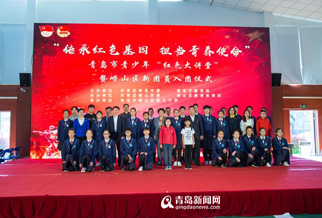 嶗山區(qū)新團員懷著無比的光榮感,新團員佩戴好團徽,在團旗下莊嚴宣誓,將活動推向高潮。