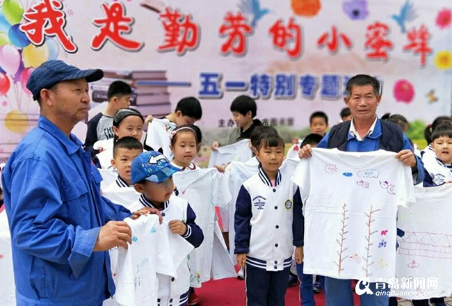在最后的“勞動節(jié)主題涂鴉”環(huán)節(jié),孩子們用五彩畫筆在潔白的文化衫上用稚嫩的線條、天馬行空的配色繪出童真的樂趣,展現(xiàn)了孩子們心中的五一勞動節(jié)和他們對節(jié)日的祝福。涂鴉活動結(jié)束后,孩子們爭相把自己的作品贈送給在現(xiàn)場服務(wù)的保潔工人,以實際行動向勞動者致以節(jié)日的問候。