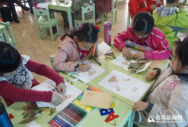 手工環(huán)節(jié),老師帶大家一起用樹葉拼出自己心中春天的顏色。小朋友們用不同顏色、不同形狀的樹葉拼出了俏皮可愛的樹葉拼圖,并依次用英語介紹了自己的作品,小朋友們各式各樣的作品充分體現(xiàn)了孩子們天真爛漫的想象力。