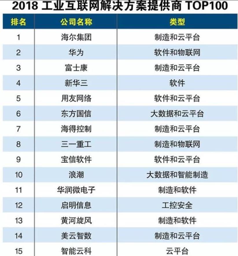 海爾位列2018工業(yè)互聯(lián)網(wǎng)解決方案提供商TOP100榜首