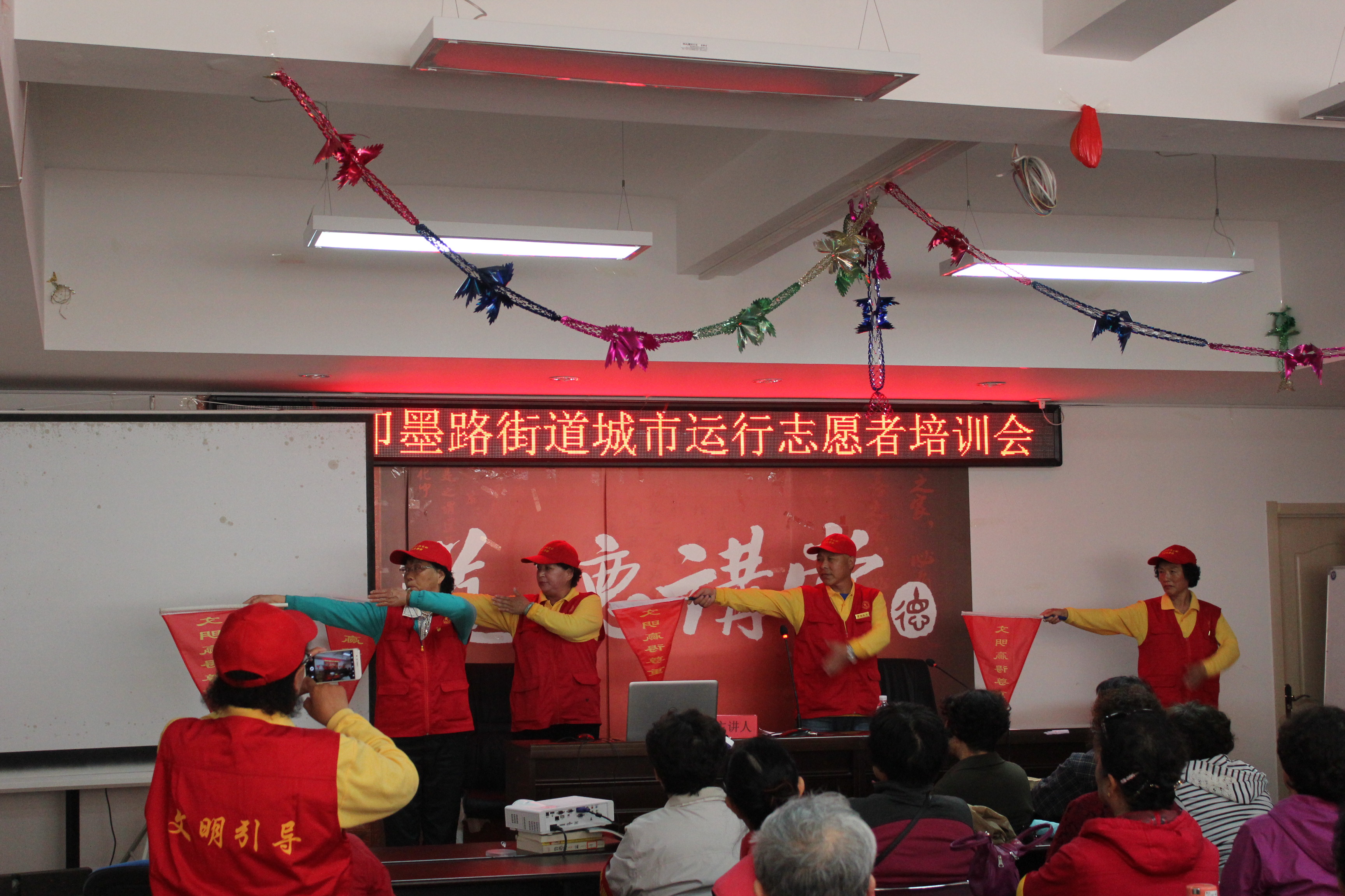 智慧青島5月8日訊 為傳承志愿精神,提升城市文明形象,展示文明青島底蘊(yùn),按照市、區(qū)文明辦工作要求,5月4日下午,市北區(qū)即墨路街道在濟(jì)陽(yáng)路12號(hào)熱河路社區(qū)舉辦城市運(yùn)行志愿者專題培訓(xùn)會(huì),培訓(xùn)邀請(qǐng)了市北區(qū)百姓宣講團(tuán)副團(tuán)長(zhǎng)張萬(wàn)義、省人大代表、城市運(yùn)行志愿者資深講師姜東和市南區(qū)公共文明志愿者宋樂(lè)玉及其團(tuán)隊(duì),分別圍繞“爭(zhēng)當(dāng)社區(qū)志愿者,做和諧社會(huì)基石”、“糾紛化解,助力城市和諧運(yùn)行”、“公共文明引導(dǎo)志愿者實(shí)務(wù)操作”三方面主題進(jìn)行了宣講,街道9個(gè)社區(qū)100余名城市運(yùn)行志愿者參與培訓(xùn),并現(xiàn)場(chǎng)發(fā)放了《青島市民文明禮儀手冊(cè)》。