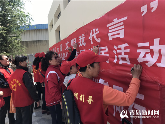 活動現(xiàn)場,街道黨員志愿者領(lǐng)讀“‘您懂得別忘了’提升文明素質(zhì),你我攜手同行”文明倡議書,并號召百余名志愿者、居民在橫幅上鄭重簽下自己的名字,許下“文明我代言”的承諾。