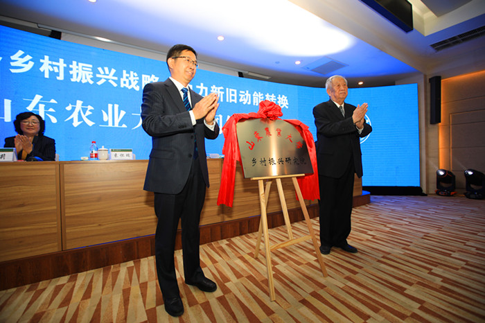 山東農業(yè)大學校長張憲省和束懷瑞院士共同為山東農業(yè)大學鄉(xiāng)村振興研究院揭牌。