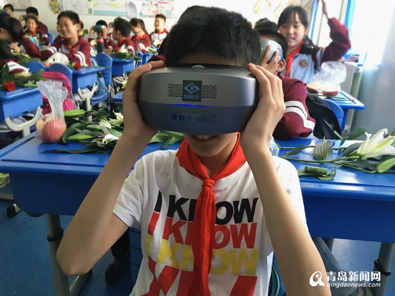 如果說東勝路小學(xué)賈老師通過AR/VR創(chuàng)客教育平臺(tái)激發(fā)了全班學(xué)生的創(chuàng)客熱情的話,那么同一天,在青島超銀小學(xué)進(jìn)行的VR多維課堂上,老師和同學(xué)們則體驗(yàn)了一場(chǎng)不一樣的超時(shí)空課堂。