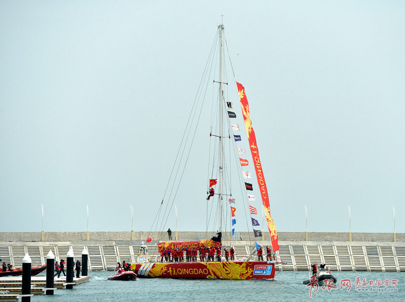 克利伯環(huán)球帆船賽已成為青島的靚麗風景。圖為2018年3月15日,克利伯環(huán)球帆船賽連續(xù)第七次造訪青島,“青島”號榮歸。(周光輝 攝)