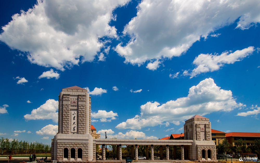 島城今日晴朗依舊,圖為藍(lán)天下的山大新校區(qū)