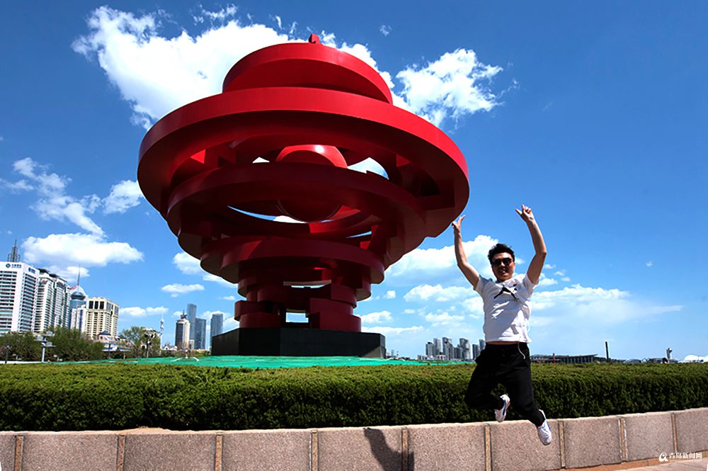 青年在“五月的風(fēng)”前興奮跳躍