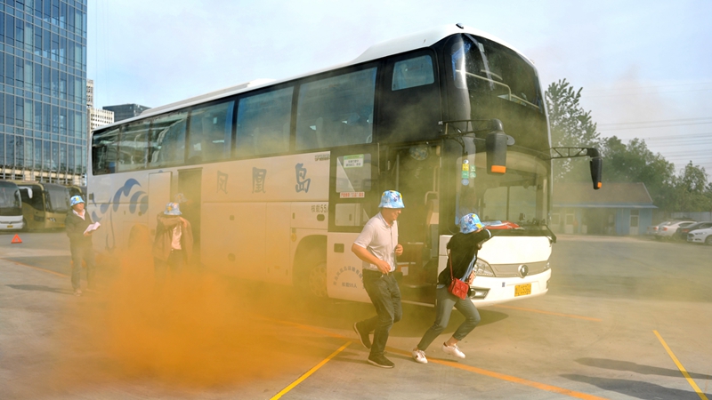 事發(fā)后,隨車導游和駕駛員當機立斷,立即啟動現(xiàn)場緊急預案,進行緊急疏散逃生。