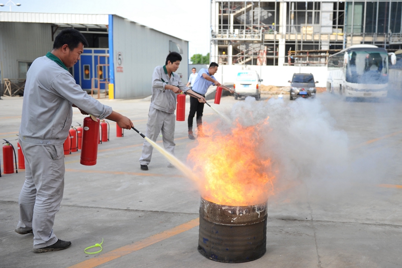 隨后,在青島鳳凰島運輸公司停車場內(nèi)開展了緊急安全疏散及消防滅火應急演練。
