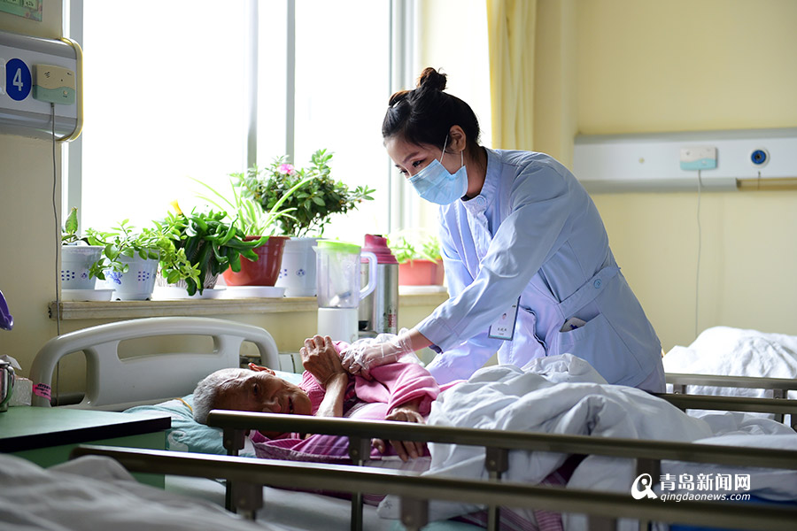 畢業(yè)之后,王曉燕這個(gè)平度姑娘通過(guò)考試進(jìn)入到了青島市交通醫(yī)院,被分配進(jìn)了專護(hù)病房。2012年,作為青島最早試點(diǎn)醫(yī)養(yǎng)結(jié)合的醫(yī)院之一,交運(yùn)集團(tuán)投資2000余萬(wàn)元對(duì)所屬青島市交通醫(yī)院進(jìn)行裝修改造,開(kāi)辟出專門樓層用于醫(yī)養(yǎng)結(jié)合項(xiàng)目的打造,專門接收失能、半失能以及大病手術(shù)后需長(zhǎng)期臥床治療的老人,王曉燕就是這里的護(hù)士。