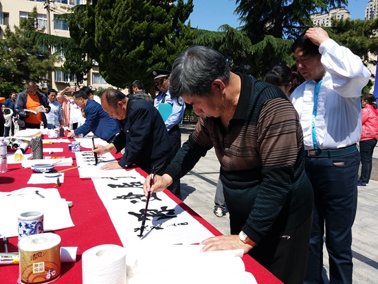 來自青島書畫協(xié)會(huì)的書畫家、街道各社區(qū)繪畫愛好者和轄區(qū)中小學(xué)生在卷軸、T恤上盡情潑墨揮毫,縱筆揮灑,自由創(chuàng)作,回憶舊時(shí)光,憧憬新未來。書畫家現(xiàn)場為美麗青島獻(xiàn)上墨寶,學(xué)生們以記憶中的家鄉(xiāng)為原型,在T恤上創(chuàng)作風(fēng)格各異的繪畫作品。大家用手中的畫筆繪畫自己心中的青島,抒發(fā)自己對(duì)家鄉(xiāng)、對(duì)祖國無限熱愛的美好情感。