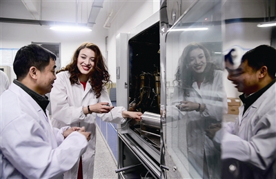 ▲在中國石油大學(xué)(華東)石油工程學(xué)院,石油與天然氣工程系張銳老師(左)在指導(dǎo)哈薩克斯坦留學(xué)生珍珠做實(shí)驗(yàn)。新華社照片