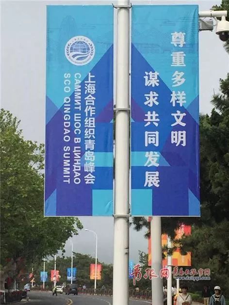 ▲青島迎接上合峰會(huì)氛圍日漸濃厚。(記者 傅學(xué)軍/攝)