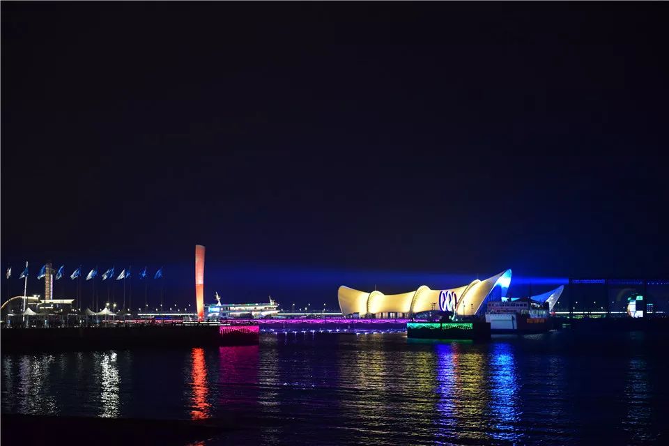 ▲奧帆中心燈火璀璨。(“青島觀”攝影師 郝明先/攝)