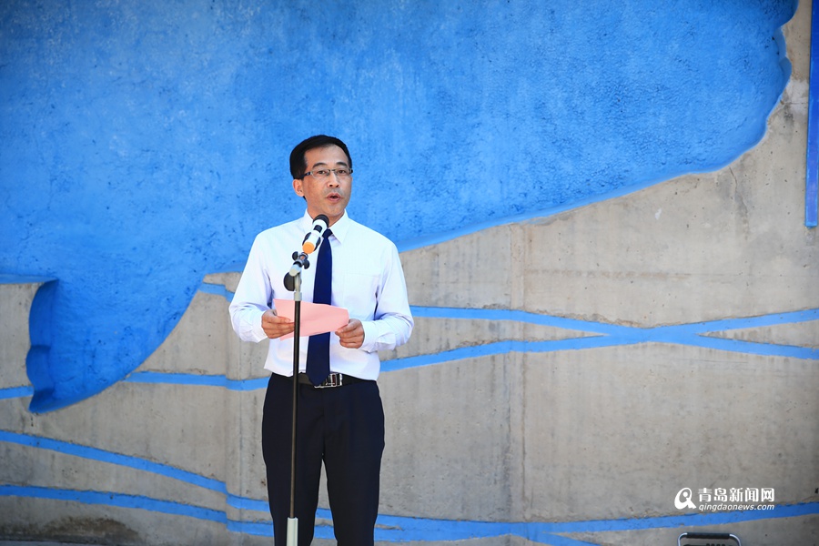 青島水族館館長(zhǎng)齊繼光,魯信實(shí)業(yè)集團(tuán)總經(jīng)理王旭冬揭牌