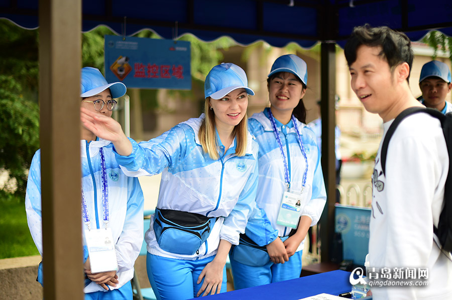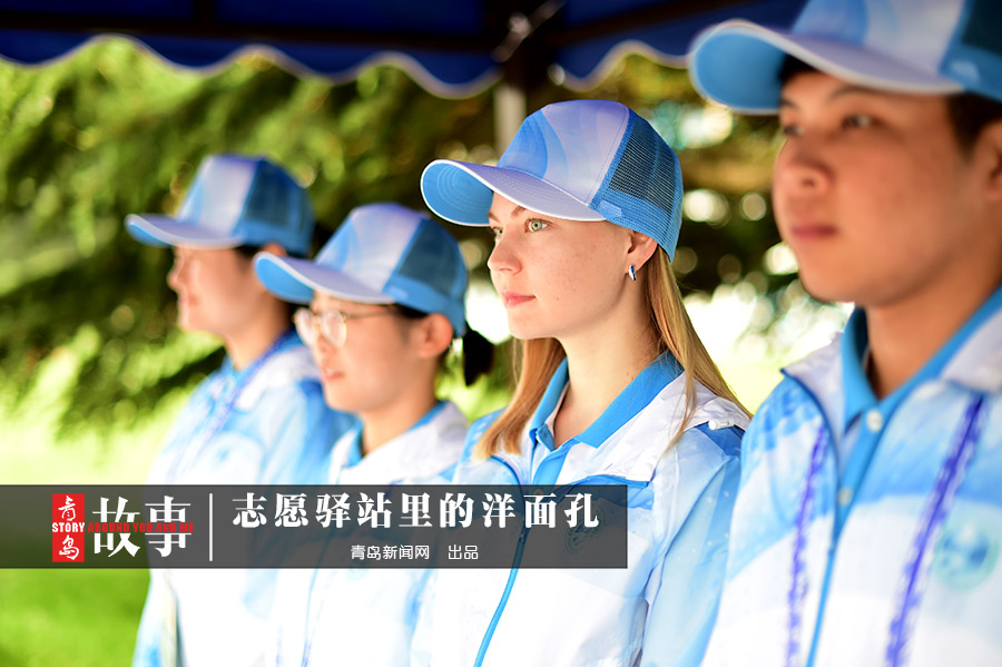 6月8日下午,在青島五四廣場北側(cè)的一處志愿服務驛站里,來自俄羅斯的留學生志愿者奧麗加正在為一位游客指路。而這幾天,像這樣的求助奧麗加遇到過很多次。