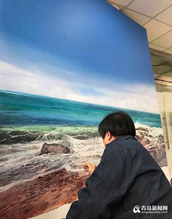 王紹波認(rèn)為,上合峰會的作品創(chuàng)作肯定與平時的藝術(shù)創(chuàng)作不同,為峰會準(zhǔn)備的作品要符合會場環(huán)境和會議主題。上合組織青島峰會的召開是中國形象的一次對外展示,其中的藝術(shù)作品也要本著博大精深、宏遠(yuǎn)壯闊的格調(diào)進(jìn)行創(chuàng)作。為此他多番思索,最終將主題鎖定了青島的大海。他說:“大海的壯闊、碧海藍(lán)天的壯美、海鷗翱翔的自由和海浪拍岸的情懷等等元素的組合,讓畫面既有壯大氣派的氣勢,同時具有嫻靜的藝術(shù)情懷和生活的情致?!?/p>