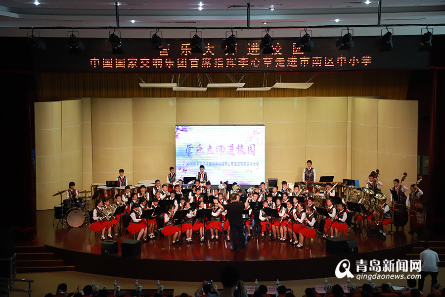 為打造管樂特色,2017年,市南區(qū)與中央音樂學(xué)院、中國音協(xié)管樂學(xué)會共同簽署了《關(guān)于推進(jìn)管樂藝術(shù)不斷發(fā)展的戰(zhàn)略合作框架協(xié)議》,每年在市南區(qū)舉辦一次管樂藝術(shù)周活動,藝術(shù)周期間邀請世界頂級樂團(tuán)來舉辦音樂會、舉辦大師課、中外音樂學(xué)院院長管樂藝術(shù)青島峰會、推動管樂藝術(shù)的發(fā)展,并計劃在五年內(nèi)達(dá)到校校成立管樂團(tuán)的目標(biāo)。截至目前,全區(qū)38所中小學(xué)已有20所學(xué)校成立了管樂團(tuán),先后聘請了多位國際、國內(nèi)著名管樂大師走進(jìn)市南中小學(xué)校開展音樂藝術(shù)交流活動,本次活動是市南區(qū)“管樂大師進(jìn)校園”系列活動之一。李心草精湛的指揮技藝令人嘆服,本次進(jìn)校園活動不僅使樂團(tuán)的演奏水平有了很大提高,而且開闊了老師和同學(xué)們的眼界,讓市南區(qū)的管樂發(fā)展在大師的引領(lǐng)下高位發(fā)展。