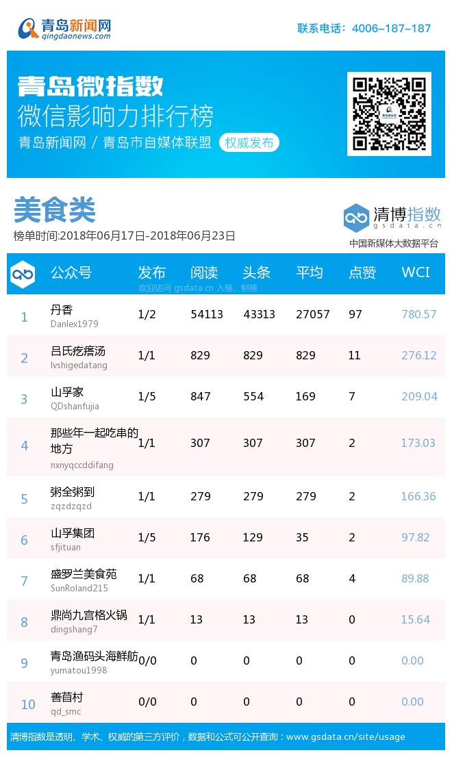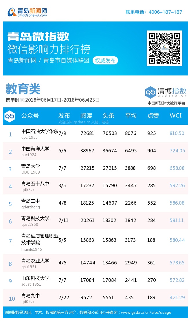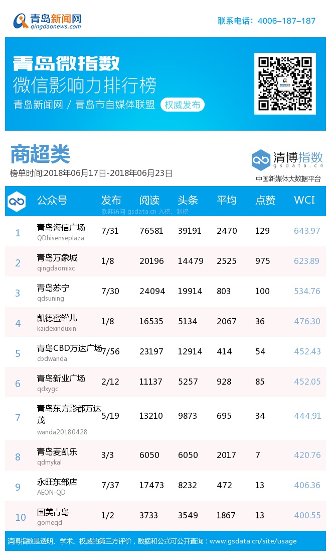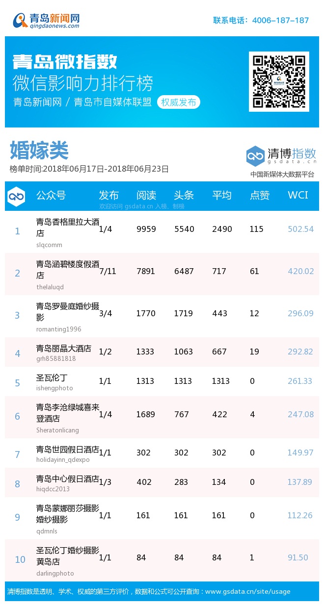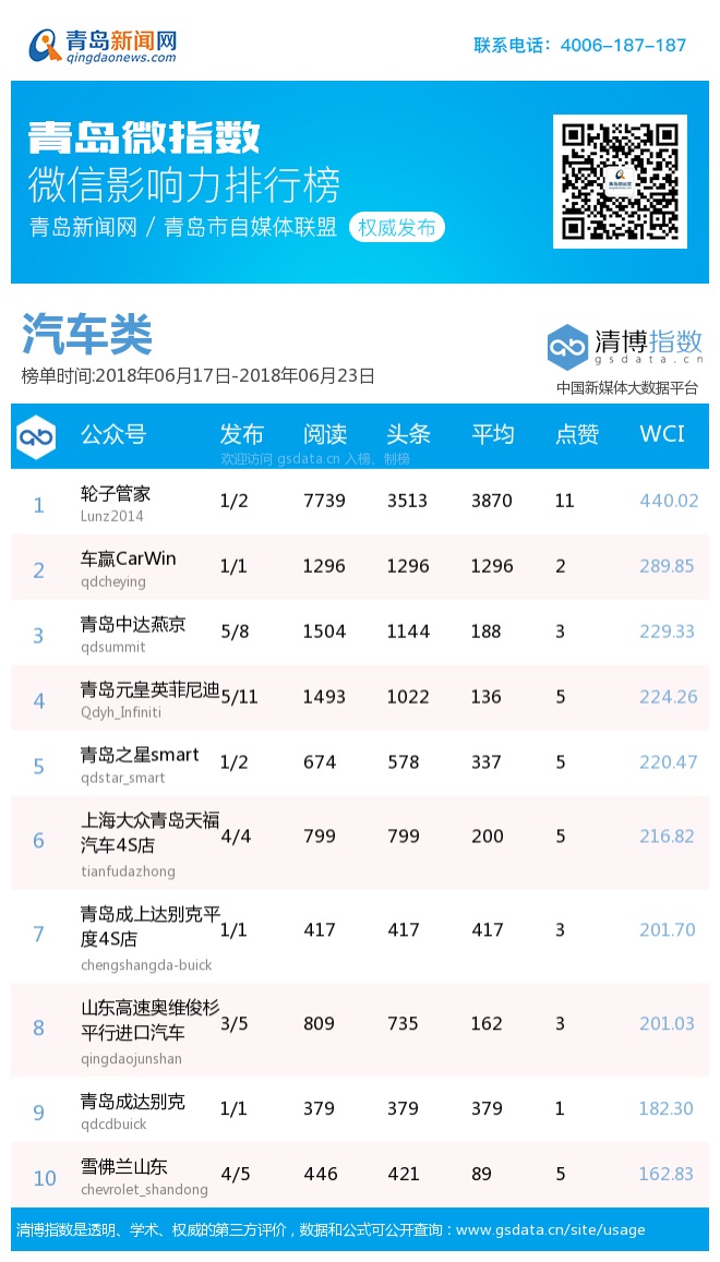 3、本次榜單收錄了青島14個行業(yè)微信公眾號,如您的賬號暫未收錄,可聯(lián)系4006-187-187。