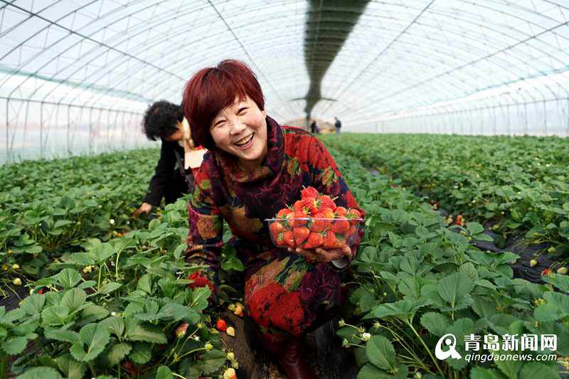 游客在大場鎮(zhèn)草莓大棚內(nèi)采摘