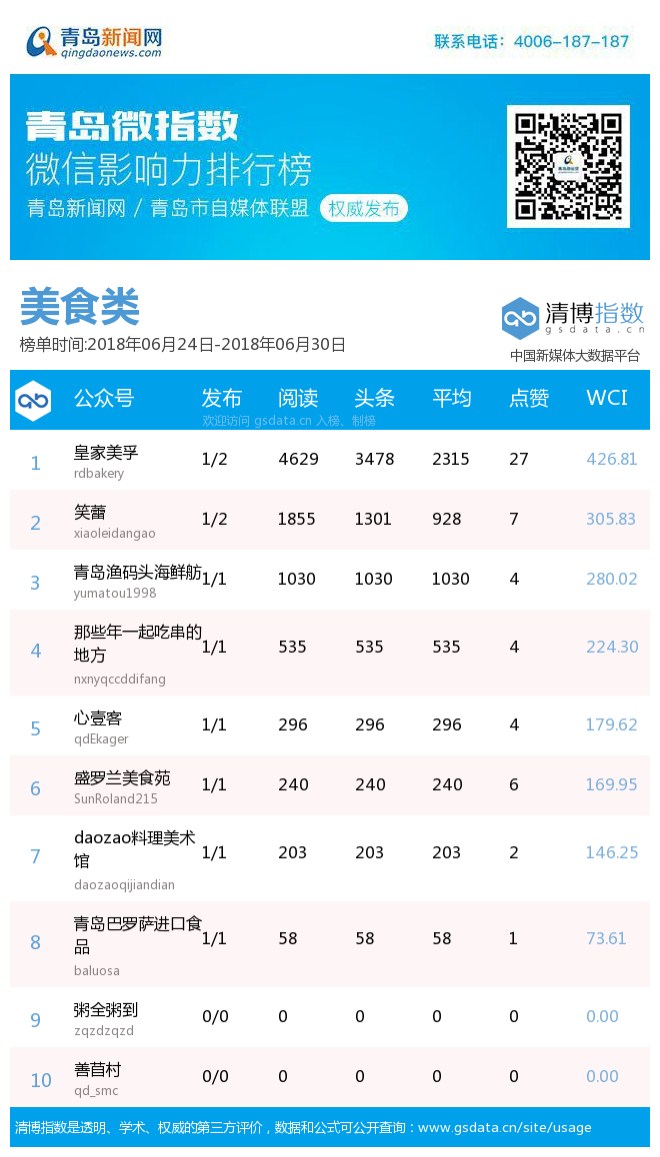 3、本次榜單收錄了青島14個行業(yè)微信公眾號,如您的賬號暫未收錄,可聯系4006-187-187。