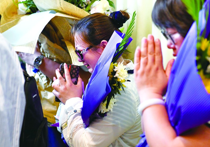 青島市紅十字會(huì)領(lǐng)導(dǎo)和工作人員來了,青大附院的醫(yī)護(hù)人員來了,聽到這個(gè)消息后備受感動(dòng)的部分市民來了,給小九月送上一束鮮花,為她的去路點(diǎn)綴上色彩。真的要離開了,媽媽再也忍不住,轉(zhuǎn)身蹲在角落里哭了起來……她依然不希望九月看見自己悲傷的情緒,轉(zhuǎn)過頭用微笑面對(duì)九月。