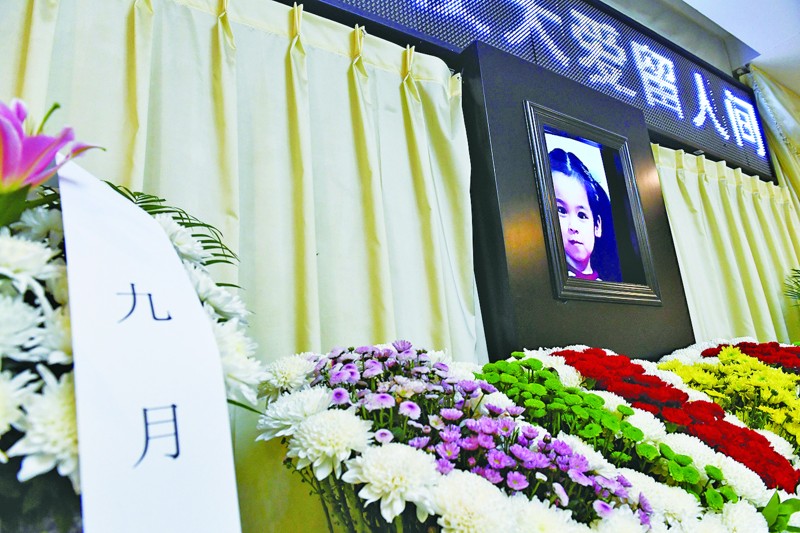 九月的遺像前擺滿花圈。首席記者趙健鵬攝