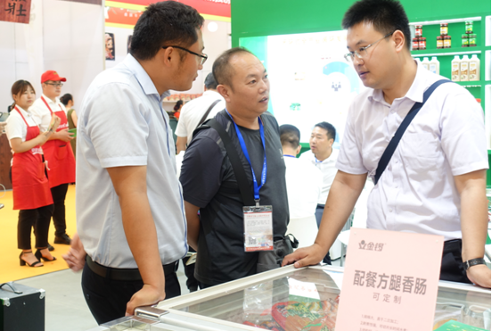 除德式新品德斯克外,金鑼餐飲類產(chǎn)品也成為本次展會一大亮點。通過市場研究以及消費者分析,金鑼了解到當前中國經(jīng)濟正處于從投資驅(qū)動型向消費驅(qū)動型轉(zhuǎn)變的時期,國民經(jīng)濟在新常態(tài)下保持平穩(wěn)增長,餐飲業(yè)充滿發(fā)展?jié)摿蜋C遇。因此,金鑼將目光鎖定至專業(yè)餐飲肉制品領(lǐng)域,明確了餐桌產(chǎn)品作為創(chuàng)新研發(fā)方向,成功研發(fā)投產(chǎn)了餐飲脆皮腸、餐飲三文治、早餐腸、爆炒腸等產(chǎn)品,涵蓋“爆炒系列、早餐系列、火鍋系列和冷盤系列”等諸多適合餐飲企業(yè)和家庭消費的系列型產(chǎn)品,并在本屆展覽會上火熱招商。同時,金鑼針對經(jīng)銷商的不同需求開放了定制化服務(wù),金鑼希望通過此舉,在滿足不同消費場景的個性化餐桌需求的同時,加速餐飲業(yè)與肉制品行業(yè)的供需對接,服務(wù)國民餐桌。