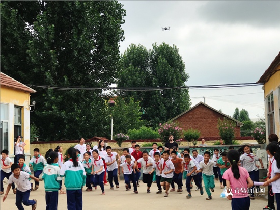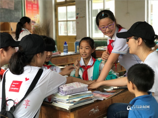 青島愛心人士和孩子們互動游戲。