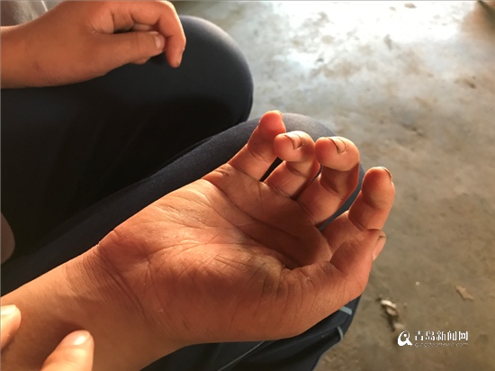 14歲姑娘馨馨(化名)常年幫家里干活,手掌粗糙,讓人心疼。