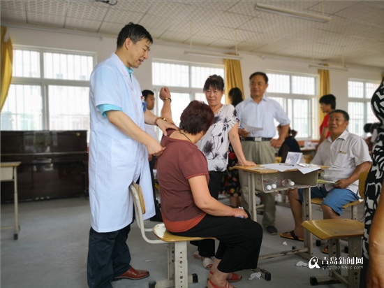 一大早,市胸科醫(yī)院副院長、主任醫(yī)師李同霞帶領(lǐng)內(nèi)科、外科、中醫(yī)、影像、護(hù)理等專業(yè)的專家骨干,驅(qū)車110多公里趕赴平度市田莊鎮(zhèn)官莊南村義診現(xiàn)場。得知有青島大醫(yī)院的專家來免費(fèi)看病,村民們一大早就在義診現(xiàn)場排起了長隊(duì)。
