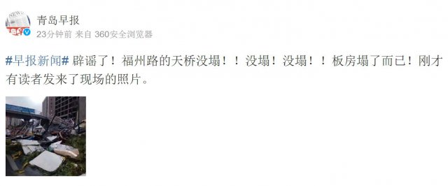 辟謠!福州路的天橋沒(méi)有塌 系一工地板房倒塌(圖)