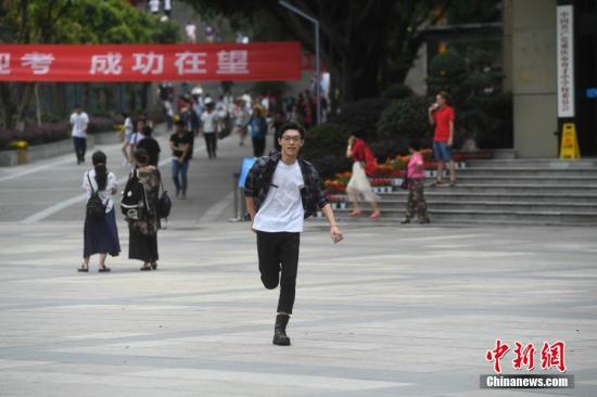 資料圖:重慶育才中學(xué)考點(diǎn)外,一名考生從考場(chǎng)跑出。當(dāng)日,中國(guó)大部分地區(qū)的高考落下帷幕。中新社記者 陳超 攝