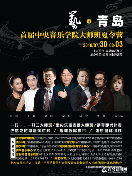 青島新聞網7月10日訊(記者 張力偉)這個暑期,在青島上中央音樂學院的大師課。由青島演藝集團主辦、青島市歌舞劇院承辦的“藝·青島”首屆大師班夏令營將于7月30日—8月3日舉行,這也是“青島藝術人才培養(yǎng)計劃”2018年的重要活動之一?!芭e辦夏令營是為了積蓄音樂之島的力量,提高青少年的藝術素養(yǎng)和專業(yè)水準?!鼻鄭u市歌舞劇院張樂群院長表示,劇院有責任有義務打造島城高水平的藝術教育平臺。