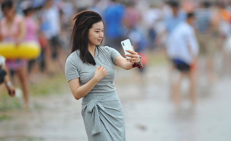消暑納涼歡樂多 眾游客在海灘拍照