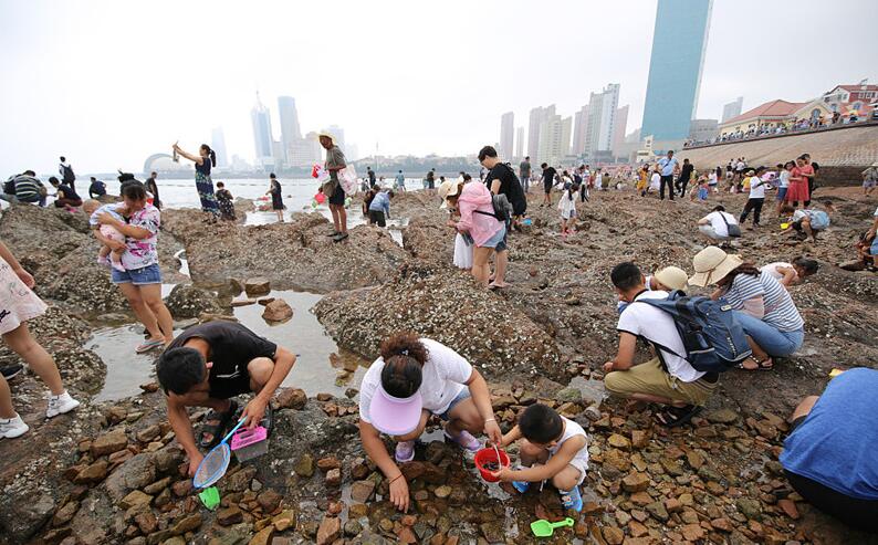 暑期旅游火爆 游客棧橋景區(qū)趕海拾趣