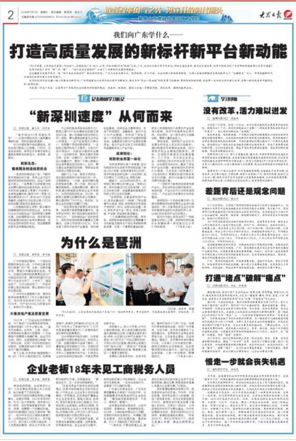 惟改革者進(jìn),惟創(chuàng)新者強(qiáng)。廣州琶洲互聯(lián)網(wǎng)創(chuàng)新集聚區(qū)以移動互聯(lián)網(wǎng)為載體創(chuàng)新經(jīng)營模式,正在快速形成新的中國電商總部集聚地。深圳前海蛇口自貿(mào)區(qū)通過體制機(jī)制全面創(chuàng)新,市場化管理運(yùn)行模式激活了一個新的發(fā)展高地。深圳灣創(chuàng)業(yè)廣場突出打造全鏈條創(chuàng)新創(chuàng)業(yè)服務(wù)體系,形成了高質(zhì)量發(fā)展的新引擎。它們的突破發(fā)展,得益于用改革創(chuàng)新謀劃藍(lán)圖,用改革創(chuàng)新打破瓶頸,用改革創(chuàng)新激發(fā)活力。