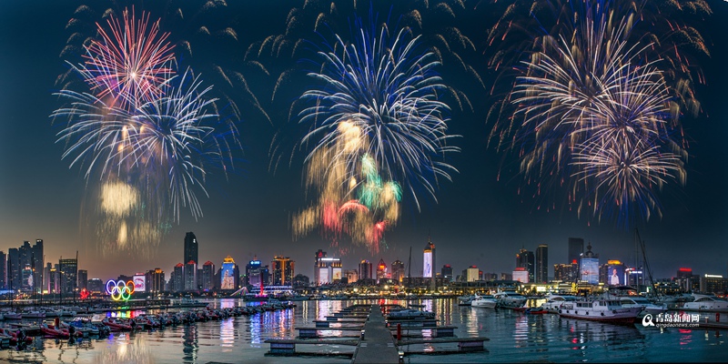 奧帆中心煙花炫彩奪目(供圖/青島市旅游發(fā)展委員會)。