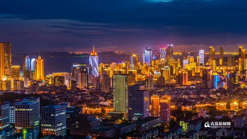 浮山灣的夜晚流光溢彩(供圖/青島市旅游發(fā)展委員會)。