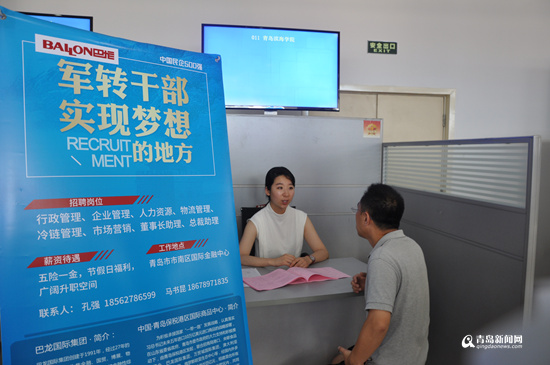 記者在招聘現場看到,在青島軍地兩用人才市場“退役軍人專窗”和“退役軍人洽談室”,許多軍轉人才與用人單位達成就業(yè)意向,會商就業(yè)協議。