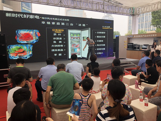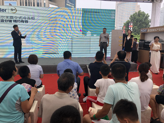 海爾集團(tuán)中國(guó)區(qū)副總經(jīng)理,青島中心總經(jīng)理顧總細(xì)心為現(xiàn)場(chǎng)人員介紹冷柜為生活帶來(lái)的諸多便利