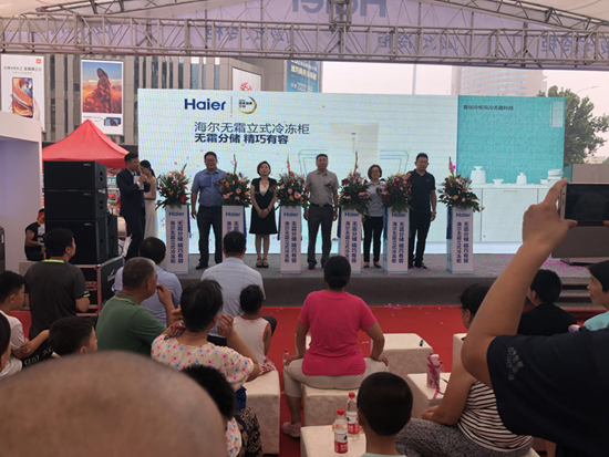海爾集團(tuán)中國(guó)區(qū)副總經(jīng)理,青島中心總經(jīng)理顧總,濰坊三聯(lián)家電有限公司副總經(jīng)理王總為悅凍立式柜揭開了神秘面紗: