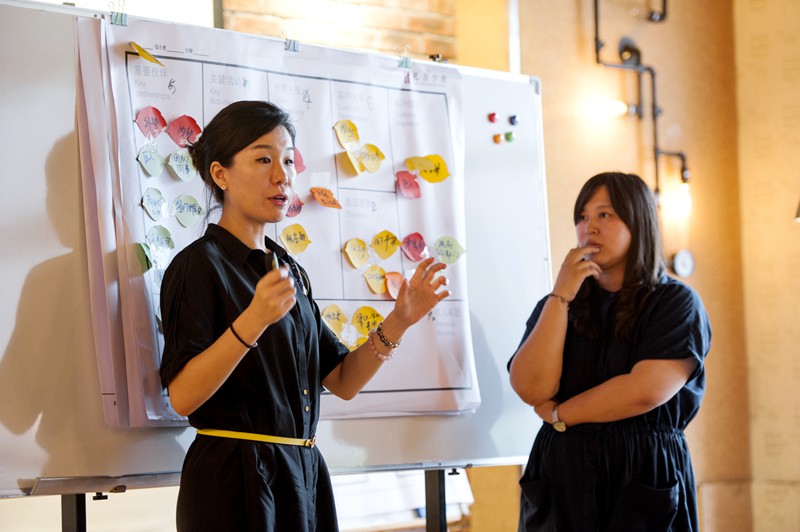 最后,由每一組選派一位代表上臺闡述自己所在組的商業(yè)模式,其他人就此進(jìn)行提問。秦瑛教練分別對各組進(jìn)行簡短點評。這一環(huán)節(jié)讓學(xué)員們在理清自己商業(yè)模式的同時,也能聽到其他人的建議和不同觀點,避免自己走入誤區(qū)。