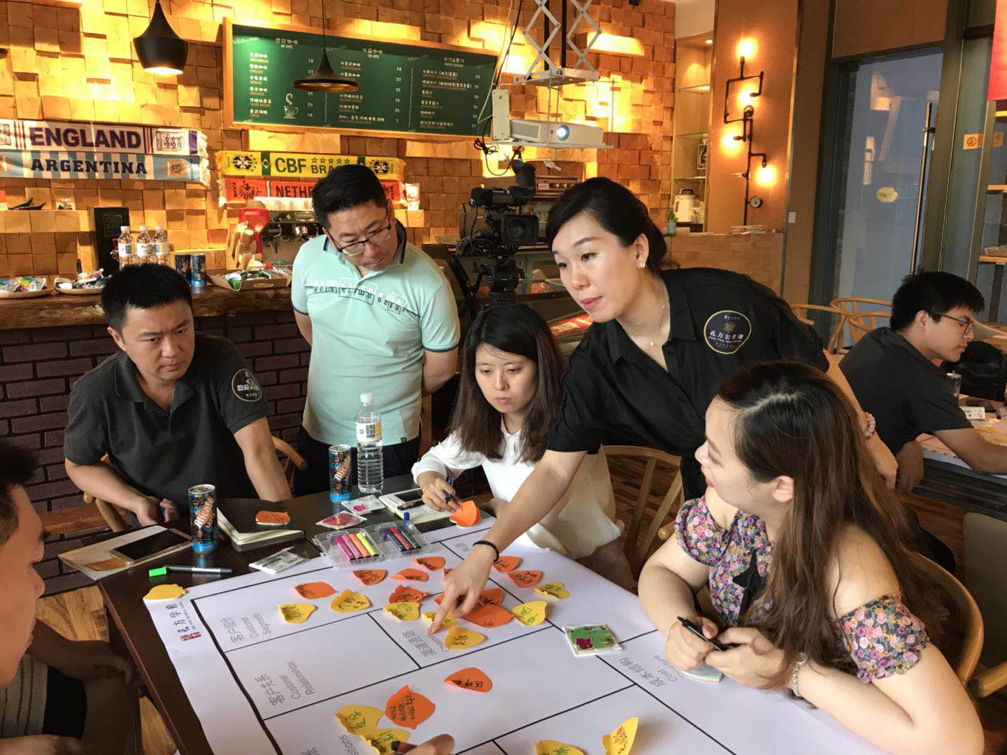 商業(yè)模式畫布圖由主要合作對象、價值主張、關(guān)鍵活動、關(guān)鍵資源、客戶關(guān)系、客戶層、渠道等9個方格組成,每一個方格都代表著成千上萬種可能性和替代方案,學(xué)員們要做的就是找到最佳的那一個。在小組討論環(huán)節(jié),各組用便利貼將小組討論出來的商業(yè)模式要素貼到畫布的相應(yīng)位置,以此來理清自己的商業(yè)模式。