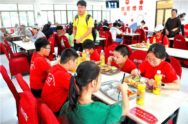孩子們中午在可口可樂(lè)公司的餐廳就餐,活動(dòng)還給每名孩子贈(zèng)送了果汁飲料。