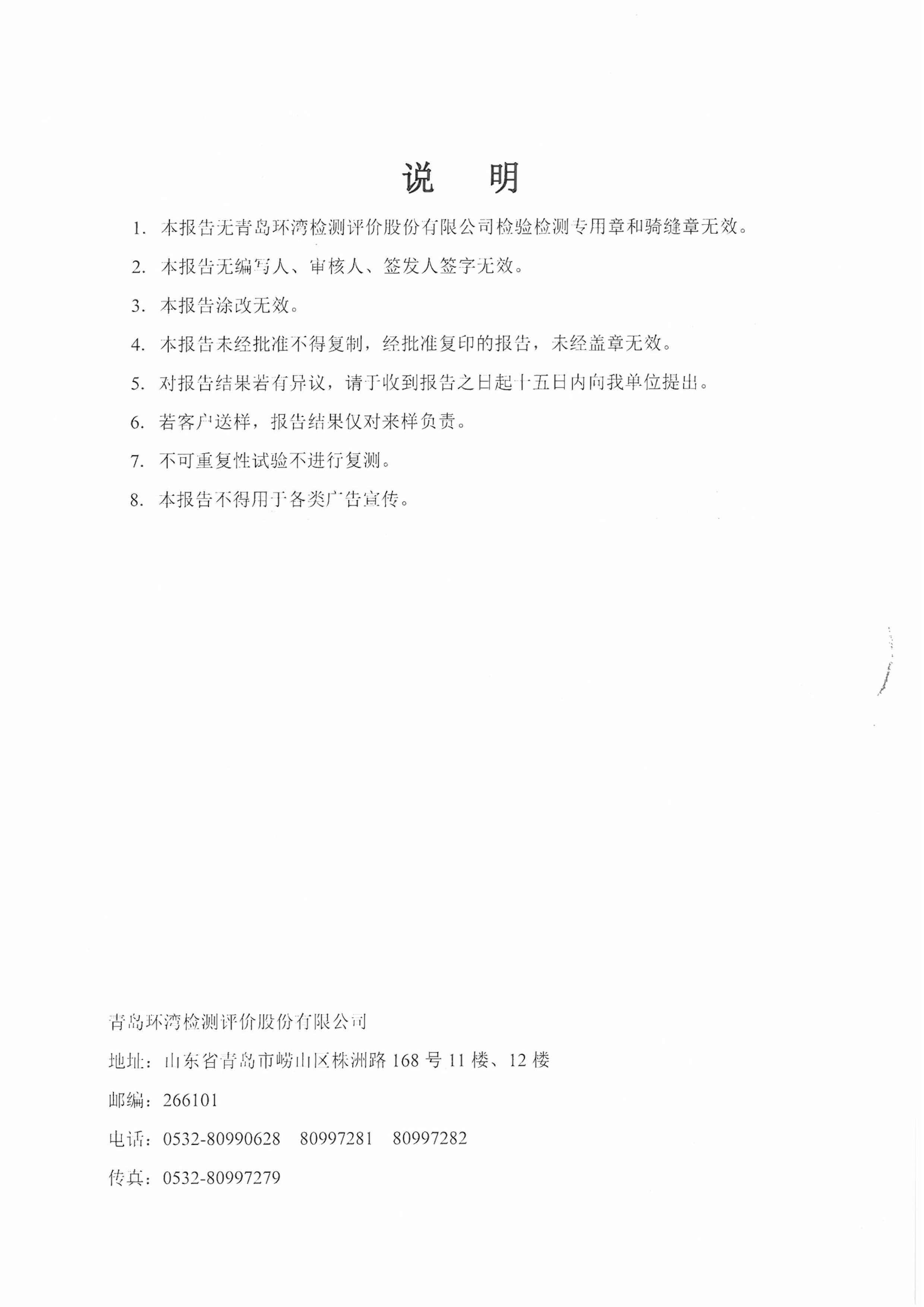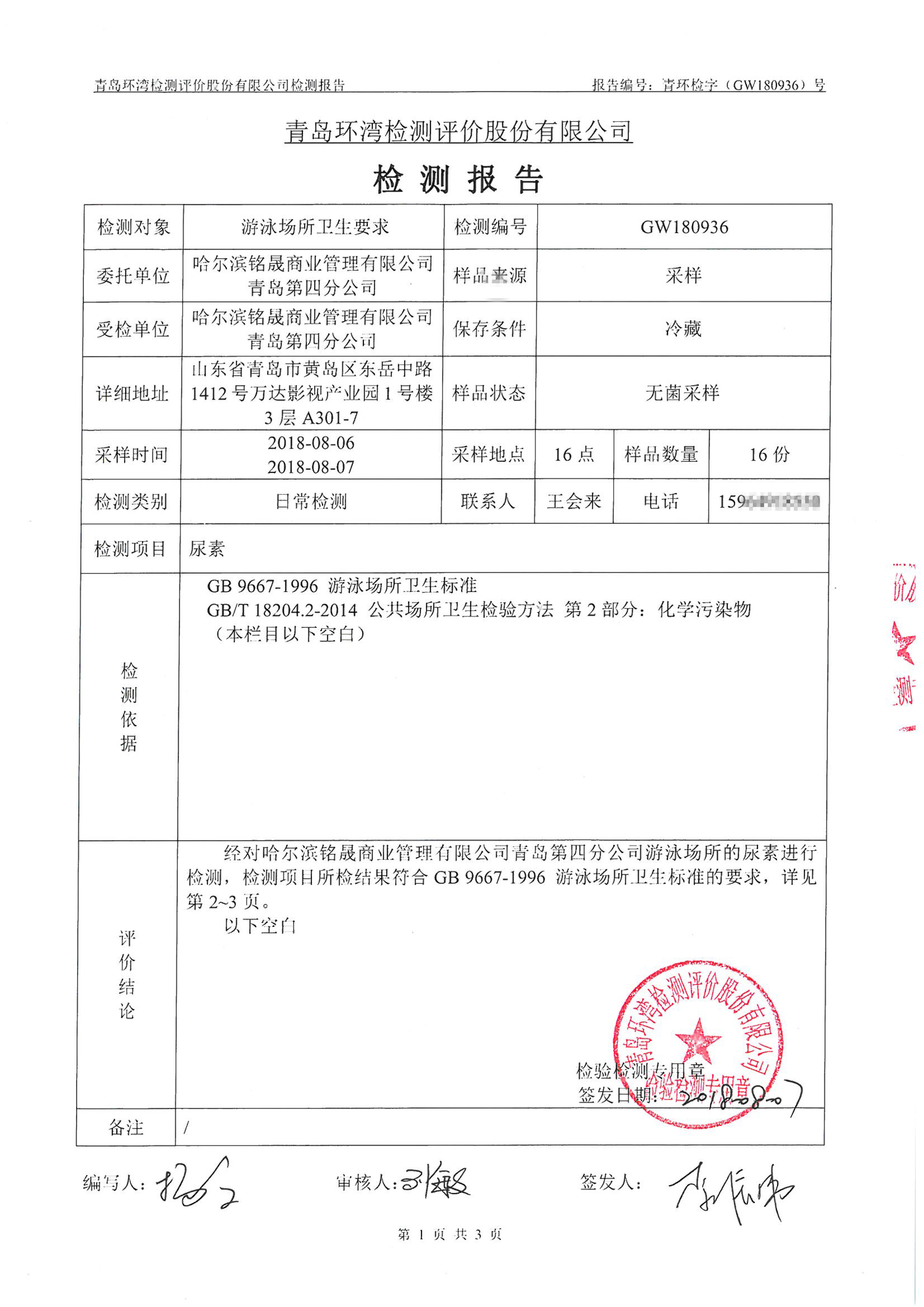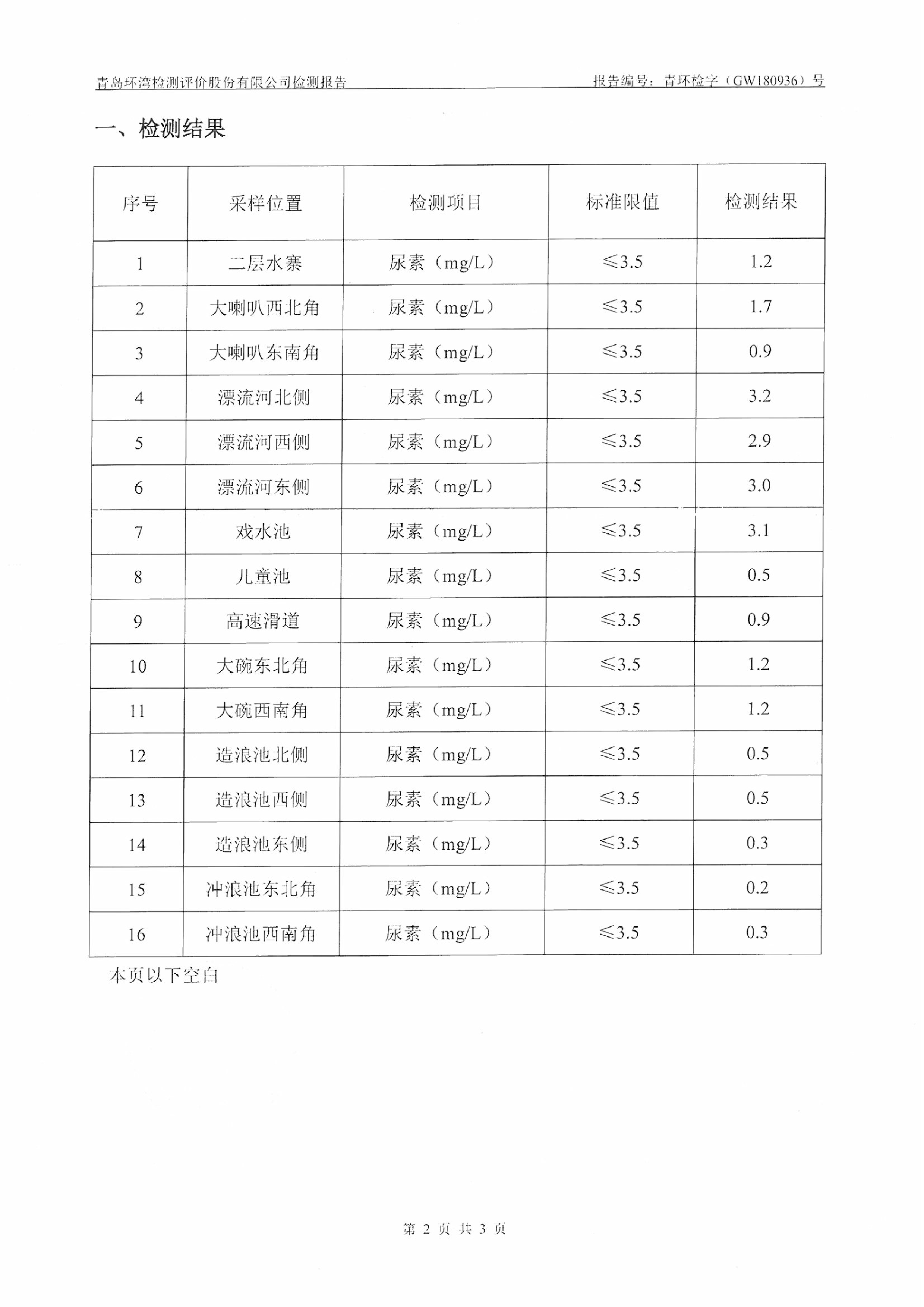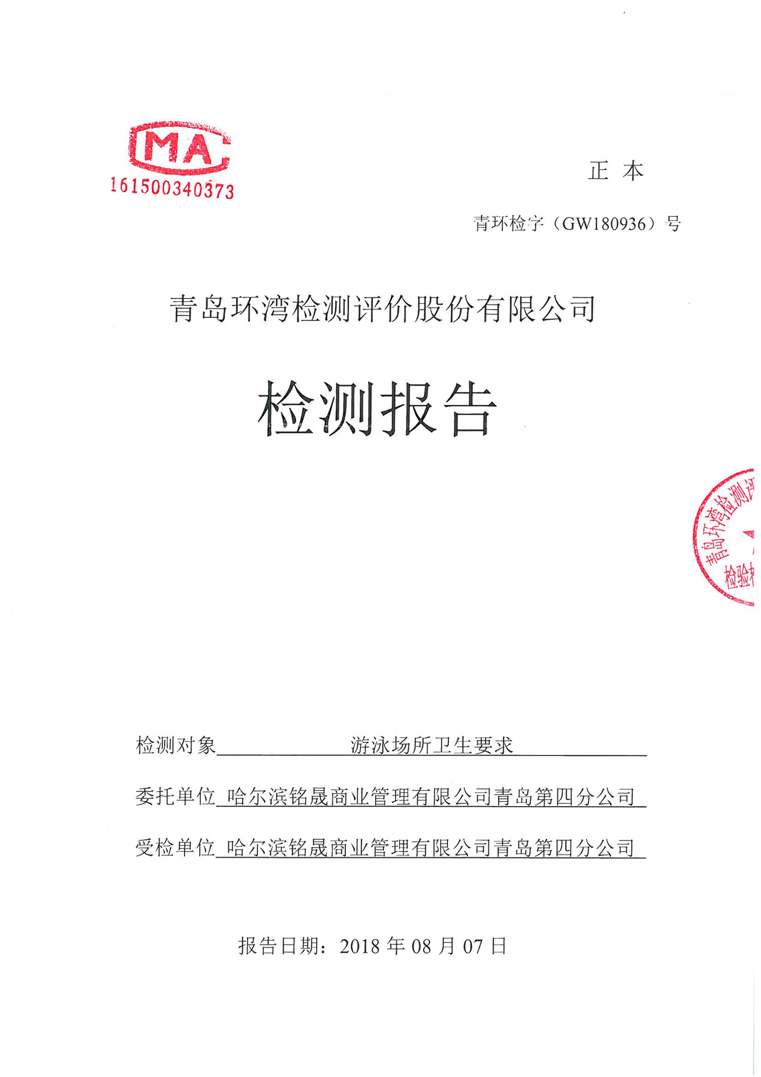 青島東方影都萬達(dá)水樂園水質(zhì)檢測報(bào)告2018年8月7日