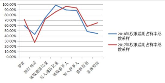 其中,網(wǎng)絡(luò)游戲類APP獲取隱私權(quán)限比例增幅最大,由2017年下半年的43.1%增長到2018年上半年的88.9%,增幅達(dá)45.8%。